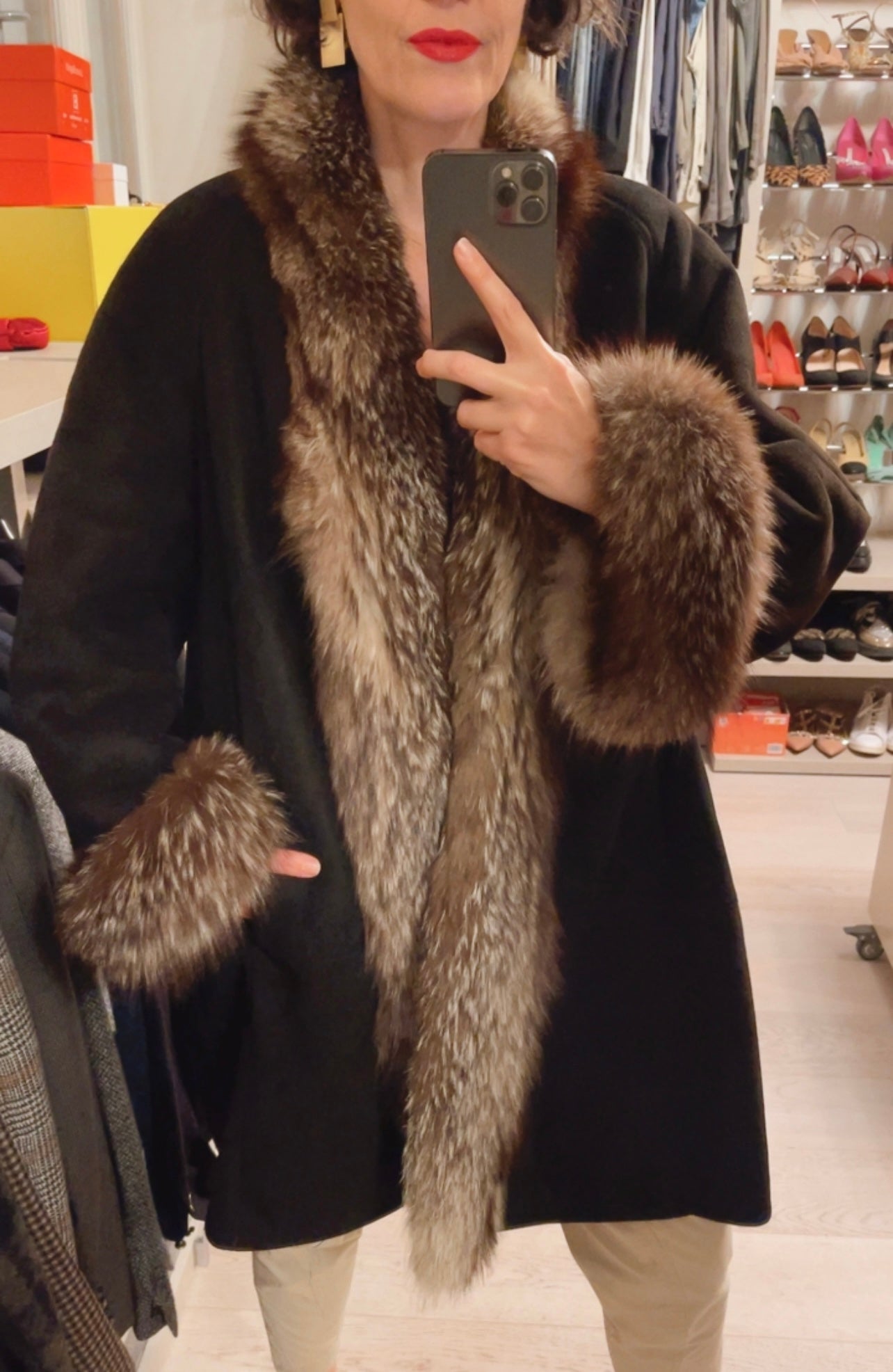 Profili e polsi bordati in vera pelliccia di volpe